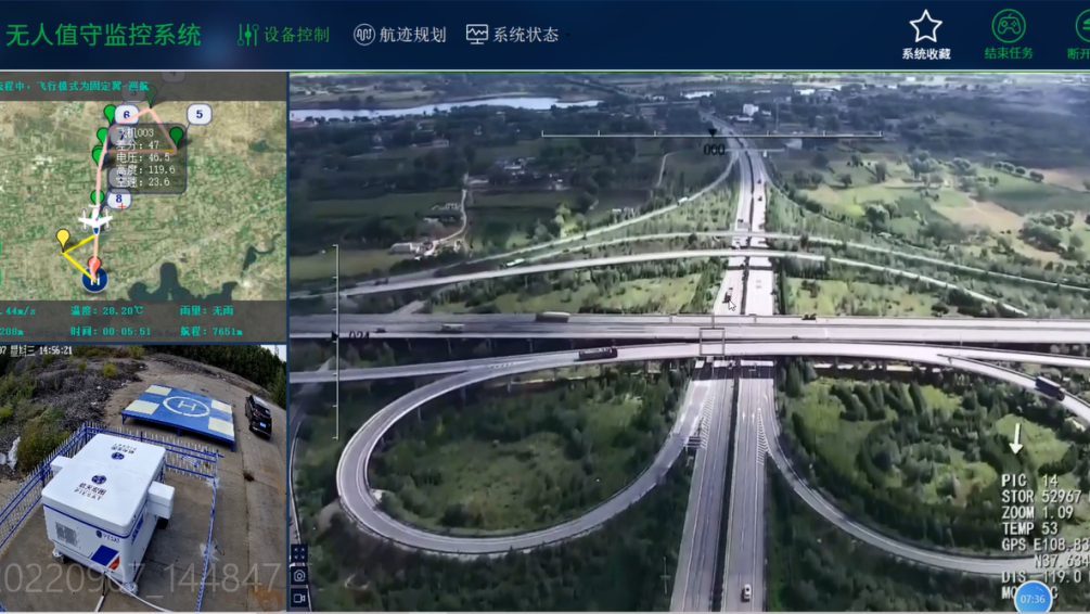 SU-50 UAV has the advantages of mobility, autonomy and high visibility. It can automatically cover the designated area and all surrounding areas, and collect and provide a whole set of information about intelligent transportation in real time. Through the integration of multi angle shooting and monitoring videos covering the whole scene of the road, the traffic infrastructure model is built, and then connected to the Internet of Things sensing facilities to form a traffic digital twin scene that includes roads, bridges, tunnels and other elements, so as to realize the universal connection between things and things, things and people, things and networks, and people and people. So as to make deduction and prediction of traffic conditions in advance, drive decision-making with intelligent data, improve the construction quality, operation efficiency, service level and management level of road infrastructure, and help the rapid development of intelligent transportation.
